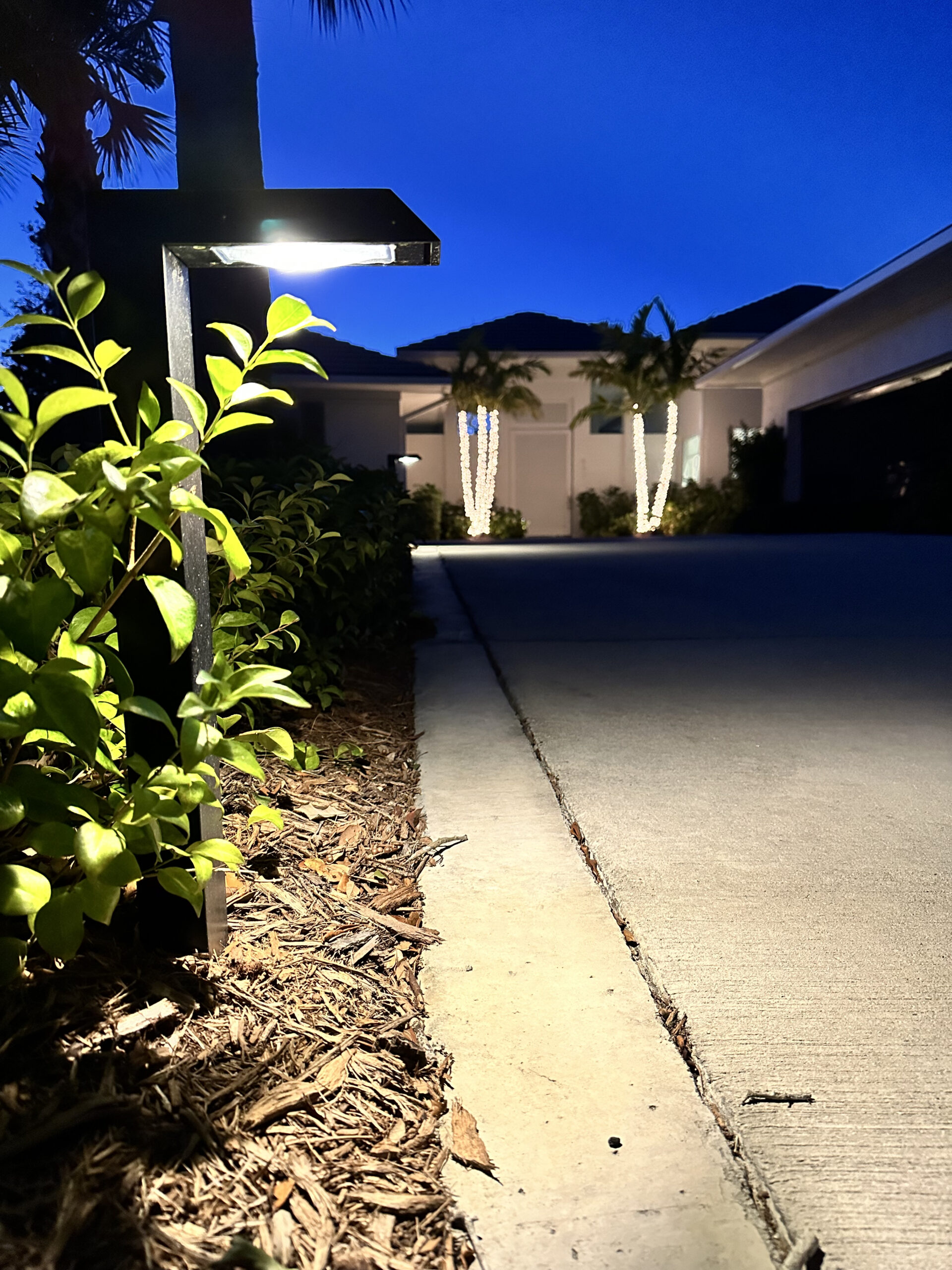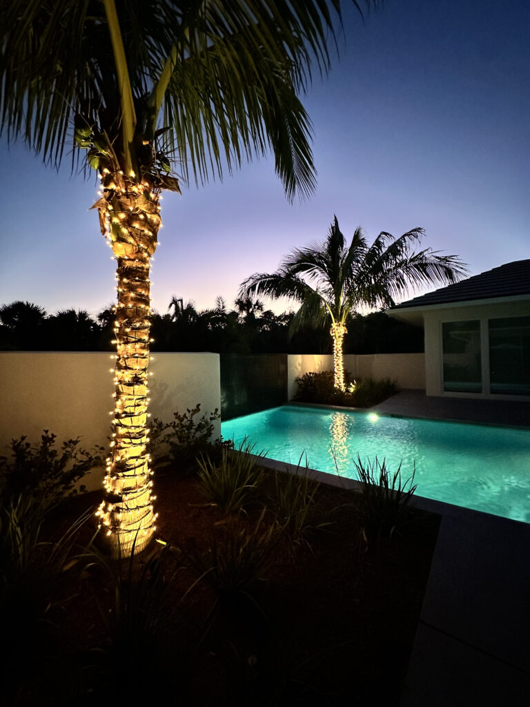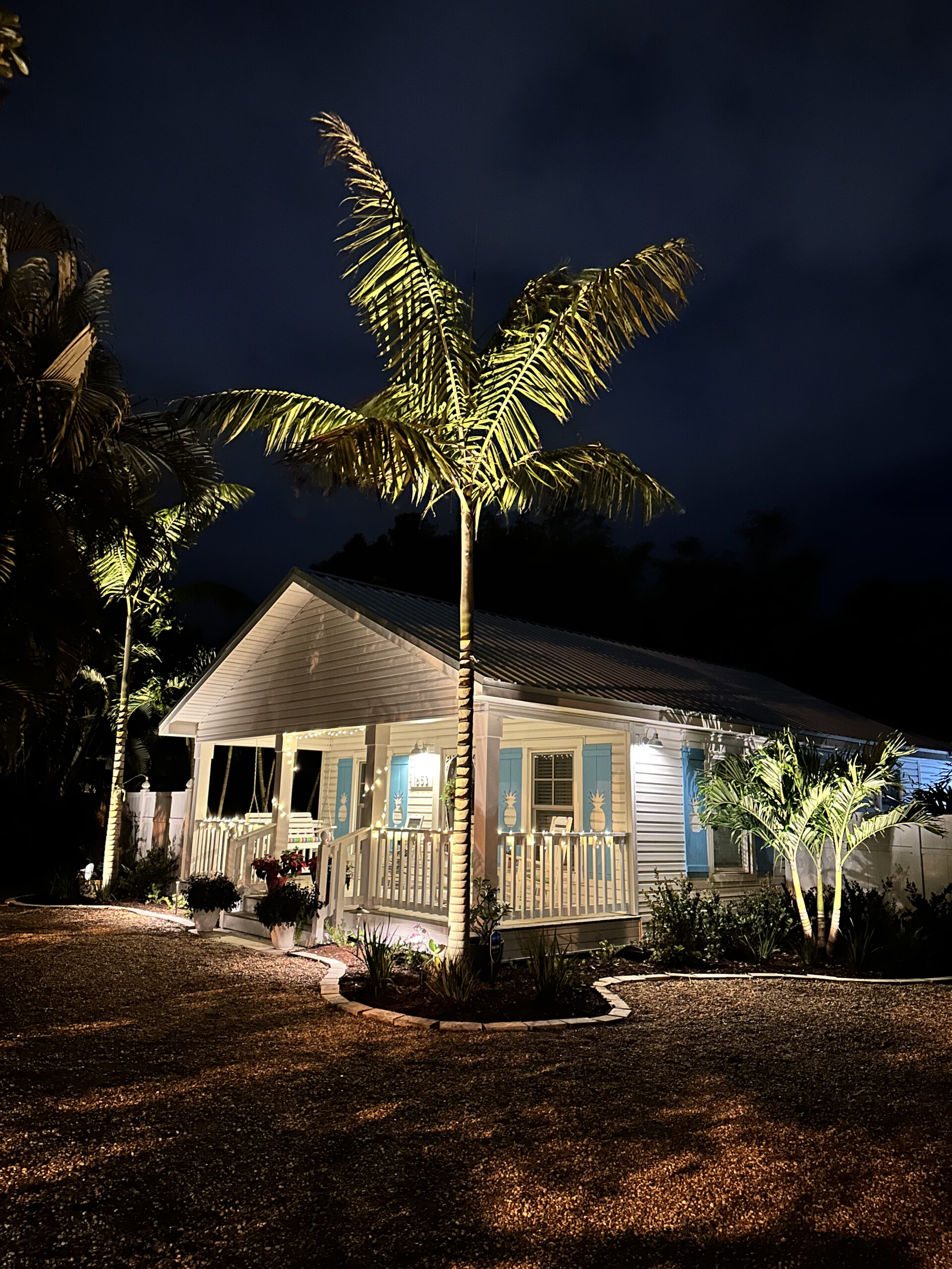 This Central Beach property began with a Tuscan-style home and an open yard with no existing landscape. In collaboration with DIGG Gardens, the landscaping was thoughtfully designed by Spencer Porteous to give the home a more established setting. Italian cypress and Japanese blueberry trees were introduced along the front of the house, with minima jasmine filling in the planting beds.